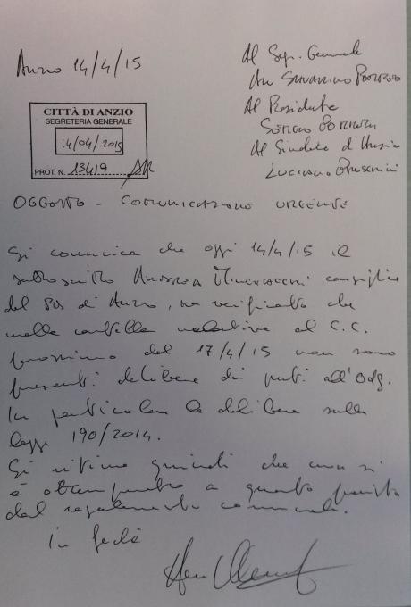 Il capogruppo del Pd Andrea Mingiacchi ha messo nero su bianco che in cartella non c’è nulla, quindi venerdì in consiglio comunale l’argomento non può essere trattato.