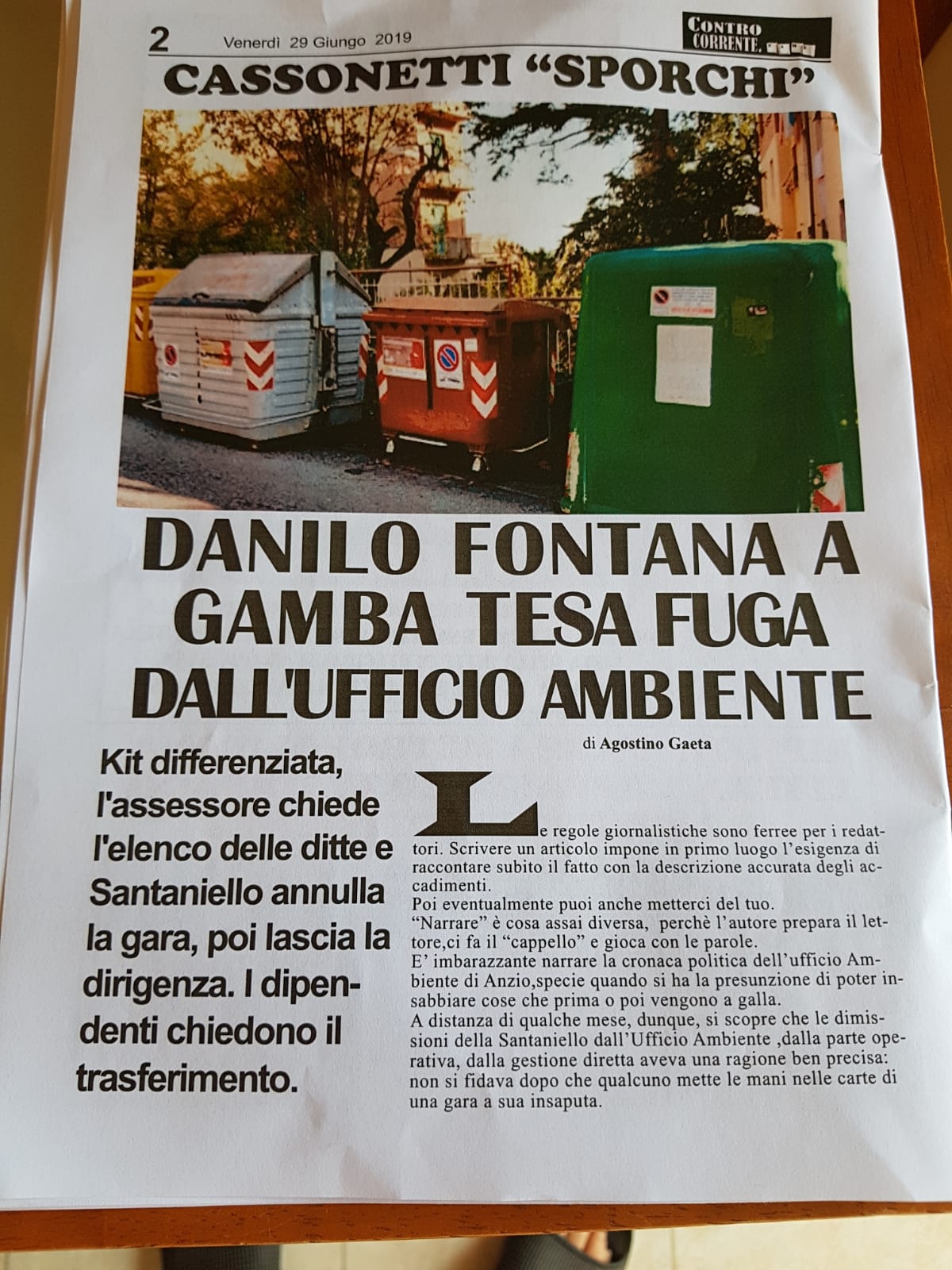 La notizia fece il giro del mondo, l’allora ministro dell’Interno Giuseppe Pisanu andò su tutte le furie, venne aperta e chiusa l’inchiesta sulla “fuga” di informazioni della quale ero accusato perché spiegai che quanto accaduto non era un segreto: “Siamo in un porto di mare”. Perdonate l’aneddoto (e il lungo silenzio su questo spazio, gli impegni si moltiplicano) ma sono partito dall’episodio perché leggo che in Comune – ad Anzio – si va cercando chi possa aver fornito a Controcorrente la notizia di un intervento “a gamba tesa” su una gara in corso – come scrive Agostino Gaeta – dell’assessore all’ambiente e vice sindaco Danilo Fontana. E della “fuga” di dipendenti. Sotto “processo” finisce Angela Santaniello, dirigente fino a poco tempo fa del delicato settore, accusata di aver divulgato la notizia e persino insultata, cosa che spero non vera. Se ha una “colpa”, la dirigente, è quella di aver fatto il suo dovere revocando quella gara. Ed è un merito, attenzione.