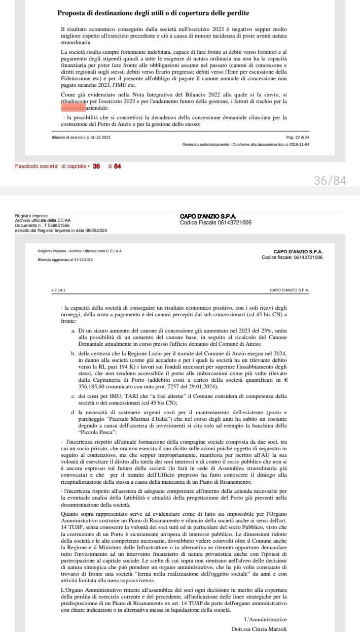 Ai debiti del bilancio 2022 si sono uniti quelli dell’anno successivo, la fuggiasca ex amministratrice unica – nel frattempo diventata presidente di Acqualatina – ha certificato il quadro fallimentare della Capo d’Anzio e la commissione straordinaria continua nel prendere tempo. A questo punto Marinedi, titolare sub judice del 39% delle quote che attualmente sono in mano a un amministratore giudiziario, ha chiesto di liquidare la Capo d’Anzio. Marinedi, quindi Marconi, il socio privato portato con “Italia Navigando” e che sta facendo con la società che doveva realizzare e gestire il porto, ciò che ha fatto con la sua stessa creatura “Italia Navigando”, ritrovandosi quasi dal nulla 10 approdi. A quel punto, offre la soluzione. In attesa della decisione del Tribunale, la situazione è fallimentare e nel caso di liquidazione si apre un fronte nuovo: il porto non si realizza e questo ormai era noto, ma chi lo gestisce? E siccome il Comune è titolare del Demanio, quali intenzioni ha la commissione straordinaria, oltre ad attendere gli eventi e tollerare i copia e incolla del dirigente nel frattempo in aspettativa?